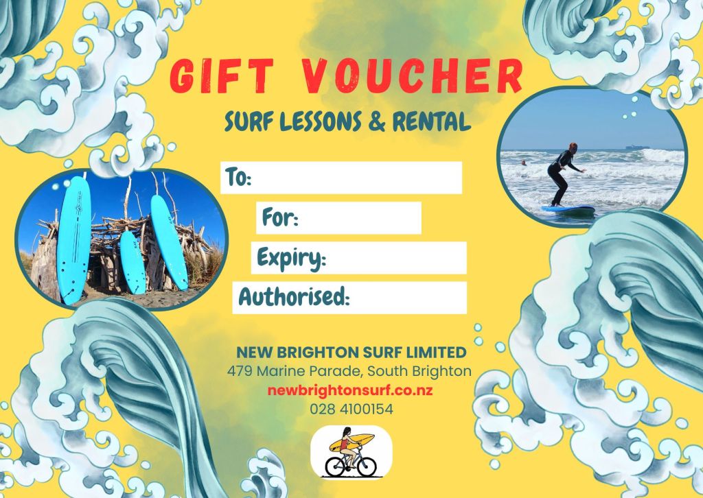 Vouchers can be used for SURF LESSONS or RENTALS.